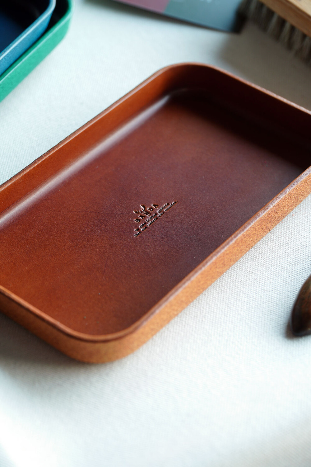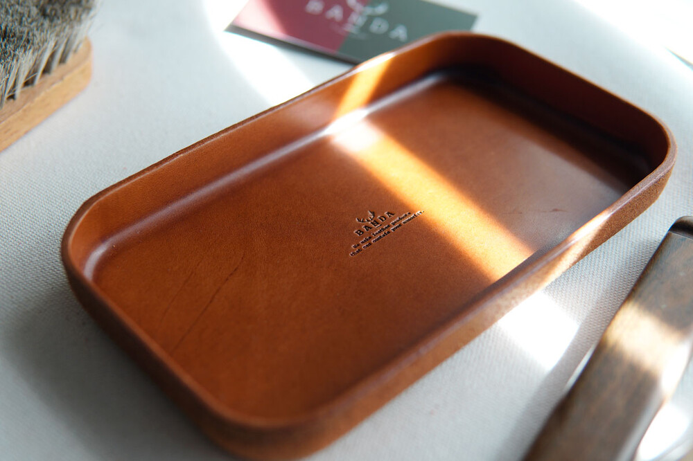 가죽을 성형하는 작업을 통해 만든 가죽 트레이 입니다. 부테로 라는 풀그레인 베지터블 가죽을 사용 및 제작하여 부테로 가죽의 은은한 광택과 고급스러움을 느낄 수 있는 트레이 입니다. 성형 과정을 통해 제작해, 가죽의 이음새가 없는 것이 특징이며, 내추럴 마감으로 가죽 제품의 멋을 느낄 수 있습니다.